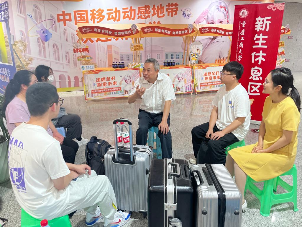 丹桂飘香,金秋迎新。9月5日,我校迎来2023级新生集中报到第一天,来自全国各地的新同学怀揣梦想,带着对大学生活的美好憧憬来到重庆工商大学报到,开启求学成才的新征程。副校长李国军来到火车北站和西站迎新服务点,向新同学的到来表示欢迎,同时慰问参与迎接新生的火车站工作人员和志愿者。