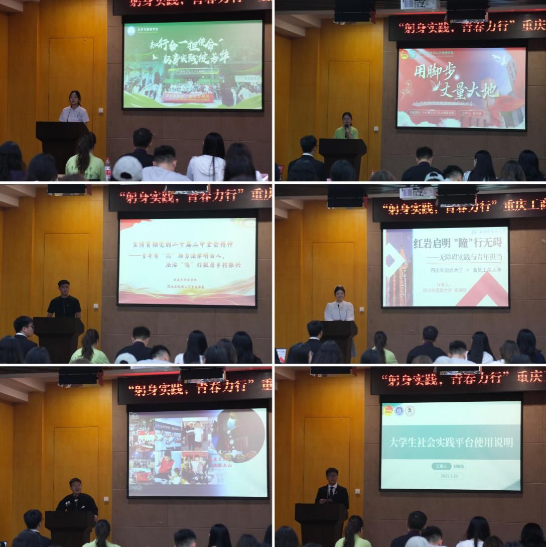 5月23日,我校“躬身实践,青春力行”暑期社会实践活动分享交流会在图书馆六会议室举行。校团委基层组织建设部部长栾薇薇,西南大学、四川外国语大学社会实践团学生负责人,我校文学与新闻学院、机械工程学院、2003网站太阳集团社会实践团学生负责人,我校2023年度全国大学生“返家乡”社会实践活动优秀个人、法学与社会学学院同学苏永鹏,来自各学院的200余名同学共同参会。