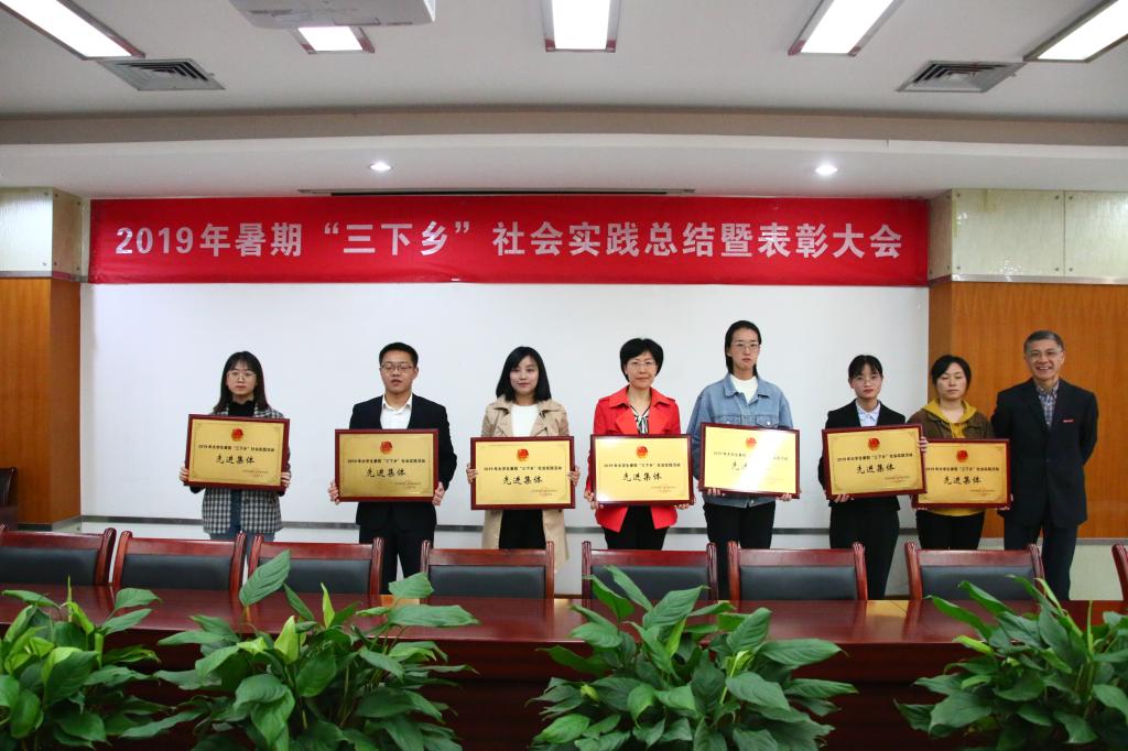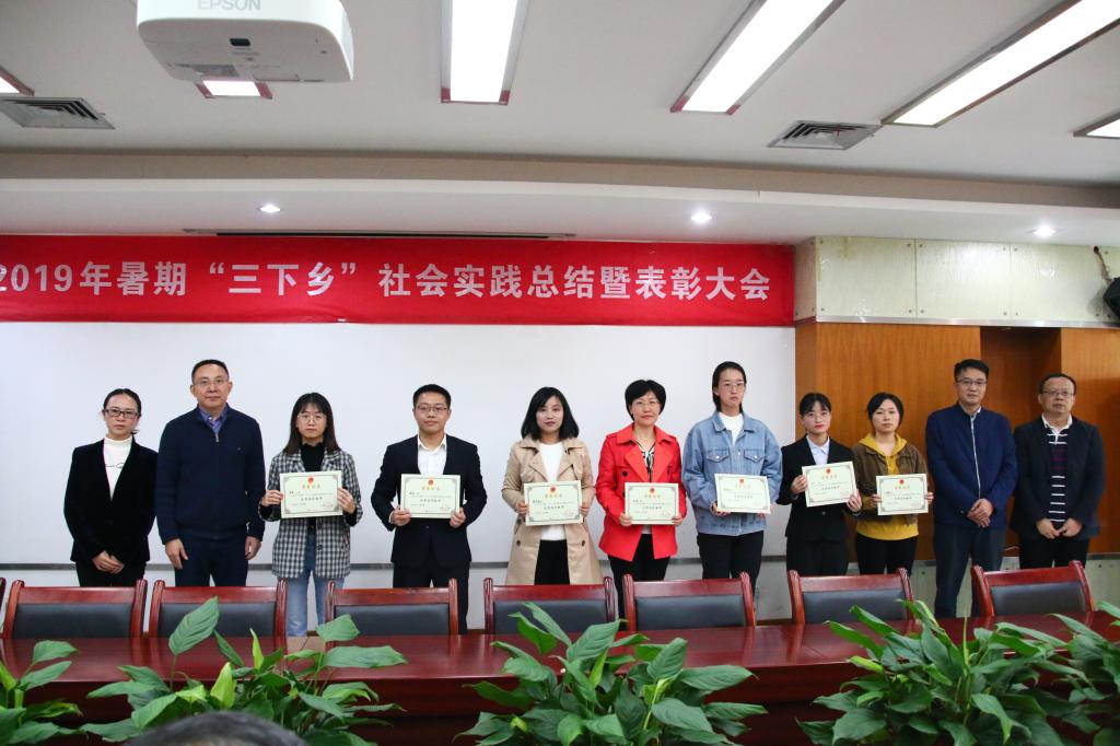 会议伊始,与会人员一起观看2019年暑期“三下乡”社会实践活动视频,回顾了各实践团队暑期“三下乡”的精彩瞬间。紧接着,校团委陆嘉副书记对我校2019年大学生暑期“三下乡”社会实践主要工作向与会人员做了汇报。 随后,各学院分团委负责人就2019年暑期“三下乡”社会实践特色亮点工作和实践成果进行了PPT汇报,展示了各学院实践团队开展的情况和取得的成果。评委们结合各学院社会实践工作的组织和开展情况,进行了评分。随后,校团委杨娟书记宣读了《关于表彰2019年暑期大学生“三下乡”社会实践活动先进集体和个人的决定》。经过材料审核评比以及现场评委评分,最终评选出管理学院、数学与统计学院、财政金融学院、文学与新闻学院、旅游与国土资源学院、法学院、研究生会等7个暑期“三下乡”社会实践工作先进集体,谭予涵、吴卫、罗勇、刘璐、胡菡、罗观、董承婷等7名优秀指导教师,会计学院“益路童行”武隆暑期支教团等21支先进团队,经济学院左晓祺同学的《关于中国省域乡村绿色发展评估、空间差异及趋同性的调研研究》等261篇优秀调查报告,商务策划学院王启鹏同学等11名社会实践宣讲活动优秀个人,与会领导为获奖集体和个人进行了颁奖。