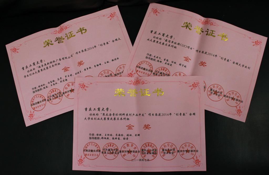 我校团委和研工部认真组织、积极推荐、全力参加。经校内初赛、决赛,邀请专家学者对作品进行培训和指导,从150件初赛作品中评选出18件作品参加重庆赛区竞赛。最终,有10件作品分获重庆赛区金、银、铜奖,在全市高校奖牌榜排名列第四。其中《果皮渣青贮饲料系列产品开发》、《微缔奥新媒体广告有限公司》、《最简单校园O2O项目》3件作品荣获金奖,《华源生物科技有限责任公司》等3件作品荣获银奖,《新型应急降藻剂系列产品研发》等4件作品荣获铜奖。