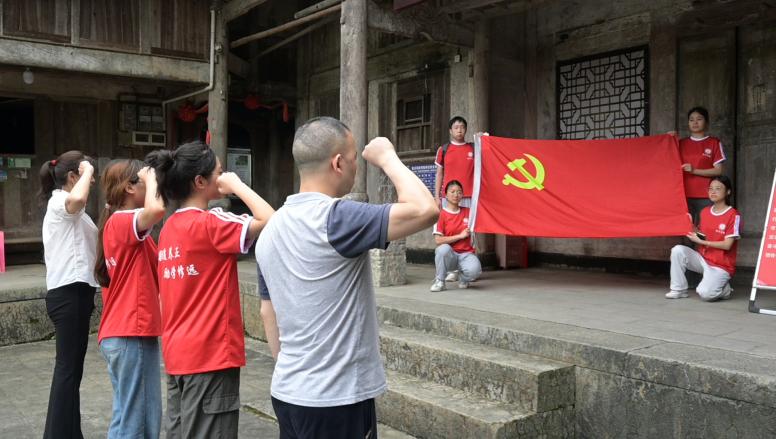 随后,带队老师喻智成、团队中的两名预备党员以及先锋社区负责人一同在陈列馆前庄严重温了入党誓词“我志愿加入中国共产党!”。