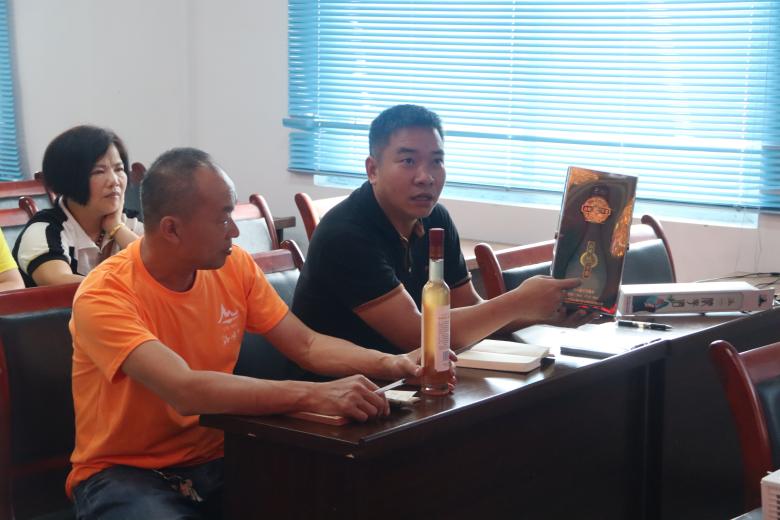 在包装设计方面,实践团成员提出:针对当地农特产品品牌Logo设计,可结合山和山路元素融合“太山”两字打造高端品牌Logo;李子酒包装设计可结合浮雕工艺设计系列产品,在前期利用模压法大规模的产出标准化产品,后期利用湿拓法、雕塑法推出限定产品包装,同时配合打造蜂糖李专属IP形象,契合当代年轻人“养成系”的情绪价值;蜂糖李包装设计可结合当下主流插画风格,诸如机理插画×多巴胺、国潮插画×美拉德,利用时尚包装激发年轻人的消费热情。文德纲也进一步表示,农产品包装出彩的关键就在于年轻化,要做年轻人喜欢的设计。