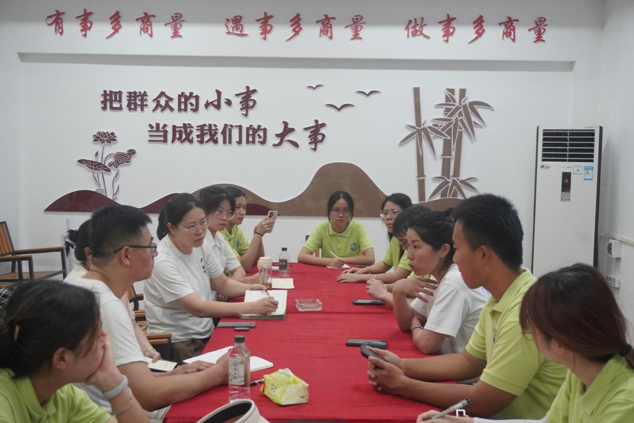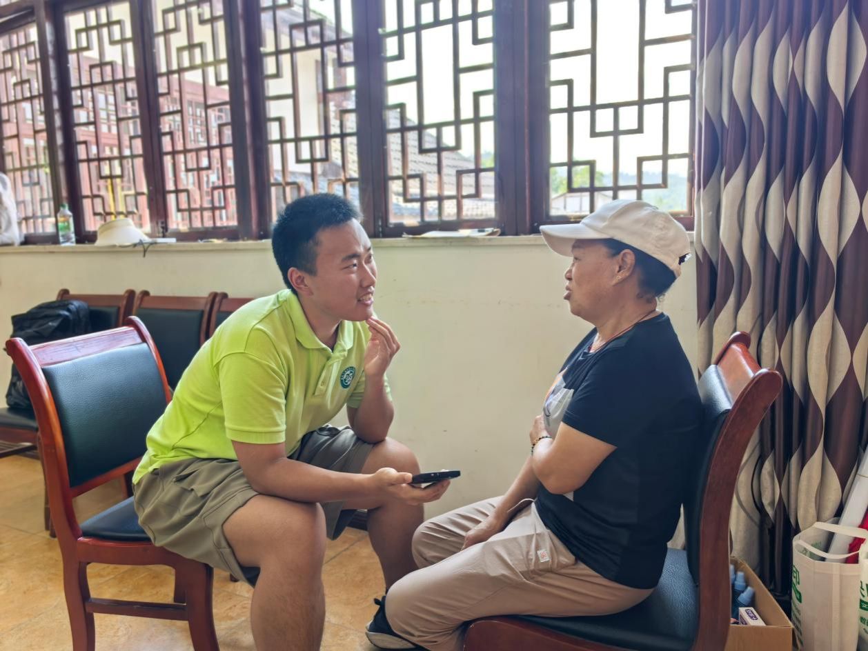 队员们带着问卷和笔记本分组入户,礼貌说明来意,耐心沟通。在村委会、农家小院、田埂边,队员们与村民围绕家庭人口、土地耕种方式、主要收入来源、医保、养老保障、村里基础设施(路、水、电、网)满意度以及对教育、医疗等问题进行问卷调查并进行深入交流。队员们不仅认真记录问卷,更用心倾听村民的心里话,朴实的“吐槽”、生活中的难处、对美好生活的向往,都一一记录下来。每一份问卷都承载着村民的信任和同学的观察。