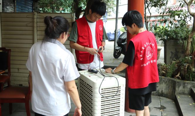 7月9日下午,协会成员冒雨前往万盛建设社区一户特困家庭提供上门服务。面对独居老人家中年久失修的电热水壶、电暖器和燃气灶等生活必需电器,队员们仔细检测线路、更换老化部件,成功修复4件家电,保障了老人的基本生活需求。“能用所学技能帮助真正需要的人,特别有意义。”队员冉泰铭在完成维修后感慨道。