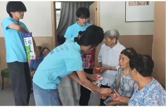 实践团深入仁沱社区。聚焦当地长寿文化,走访百岁老人之家,挖掘长寿密码。从饮食结构到生活习惯,从居住环境到心理状态,全方位探寻健康长寿的人文内涵,感受社区长寿文化魅力。在陪伴老人时,成员们为老人送上精心准备的生活物资,向老人表达了诚挚的关心与问候。