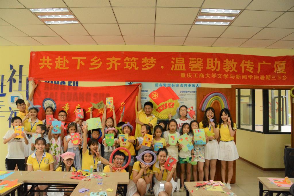 7月9日至13日,文学与新闻学院暑期嘉年华实践团的12名同学来到重庆市九龙镇广厦城社区,进行为期五天的暑期三下乡社会实践活动。志愿者们通过精心准备的课程,为小朋友们带来丰富多彩的趣味课堂。