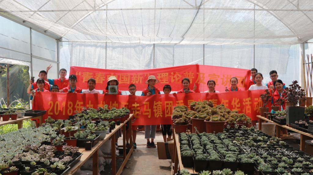 活动中,志愿者们携留守儿童去往走马镇敬老院和植物园进行社会实践和学习。在走马镇敬老院,志愿者们为老人带去了“一带一路”政策宣讲,与孩子们一同学习了走马古镇的国家级非物质文化遗产——曲艺文化。宣讲团成员带领老人和孩子用鲜红的手印,铭记改革成果,畅想美好未来。在植物园中,志愿者们宣讲了人与自然和谐相处的生态文明观,通过开展植物调研和“水土流失”沙盘模拟实验,让孩子们进一步了解环境保护的重要性。同时在综合文化服务中心,志愿者们还与重庆师范大学文学院的大学生们就如何推动千年古镇的文旅产业开发进行了交流和探讨。