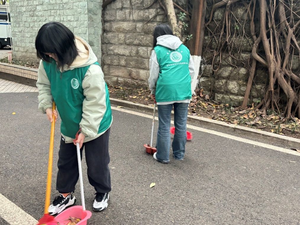 活动开始前,工作人员将校园划分为18个责任区块并编制专项清洁方案。活动开始后,志愿者们按时集合并领取洒扫工具,在各组组长带领下有序展开劳动实践工作。在教学区域,志愿者们认真清扫楼内卫生重点区域,仔细擦拭楼梯扶手、黑板和教室门窗等易脏部位;在校园其他公共区域,志愿者们带着工具清扫校园的枯枝落叶,捡拾校园各处的垃圾纸屑。