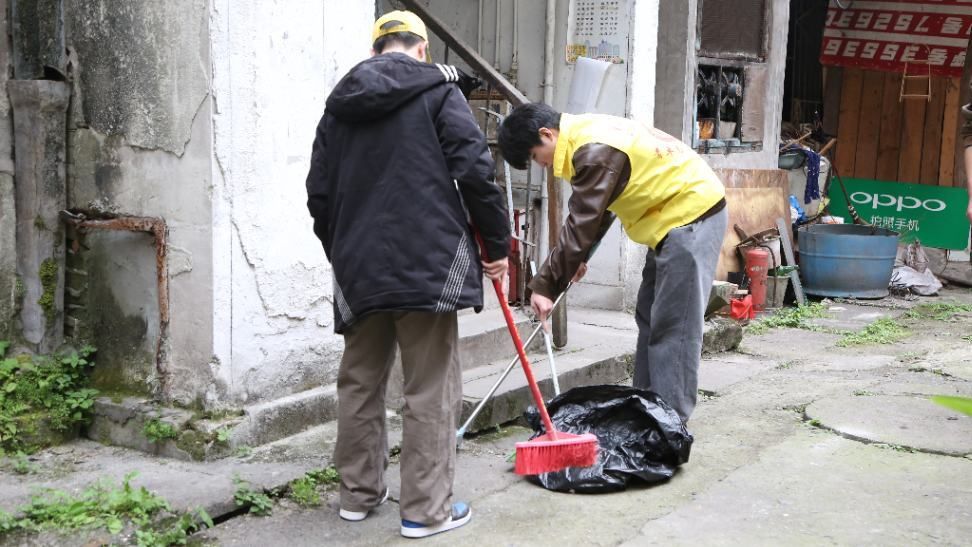 轻风拂扬,微光洒落,到达社区后,志愿者们迅速分散开来,分工明确、有条不紊地进行打扫。手持扫帚者俯身清扫道路落叶,连砖缝间的碎屑也不曾遗漏;擦拭组细致清理楼道扶手与公共设施,金属表面映出斑驳光影;陪伴组的志愿者则与老人围坐长椅,聆听岁月故事,笑语声与扫帚的“沙沙”声交织成春日序曲。短短两小时,社区街道焕然一新,老人们的笑容比阳光更明媚。志愿者们的到来,为平日里安静的社区注入生机与活力,为老人们的生活增添了一抹靓丽色彩。他们怀揣热忱,走进老人们家中,对他们进行慰问,用汗水与关怀为社区老人送上温暖,绘就一幅爱与奉献的动人画卷。最后,在志愿者们的不懈努力中,本次活动圆满落下帷幕。