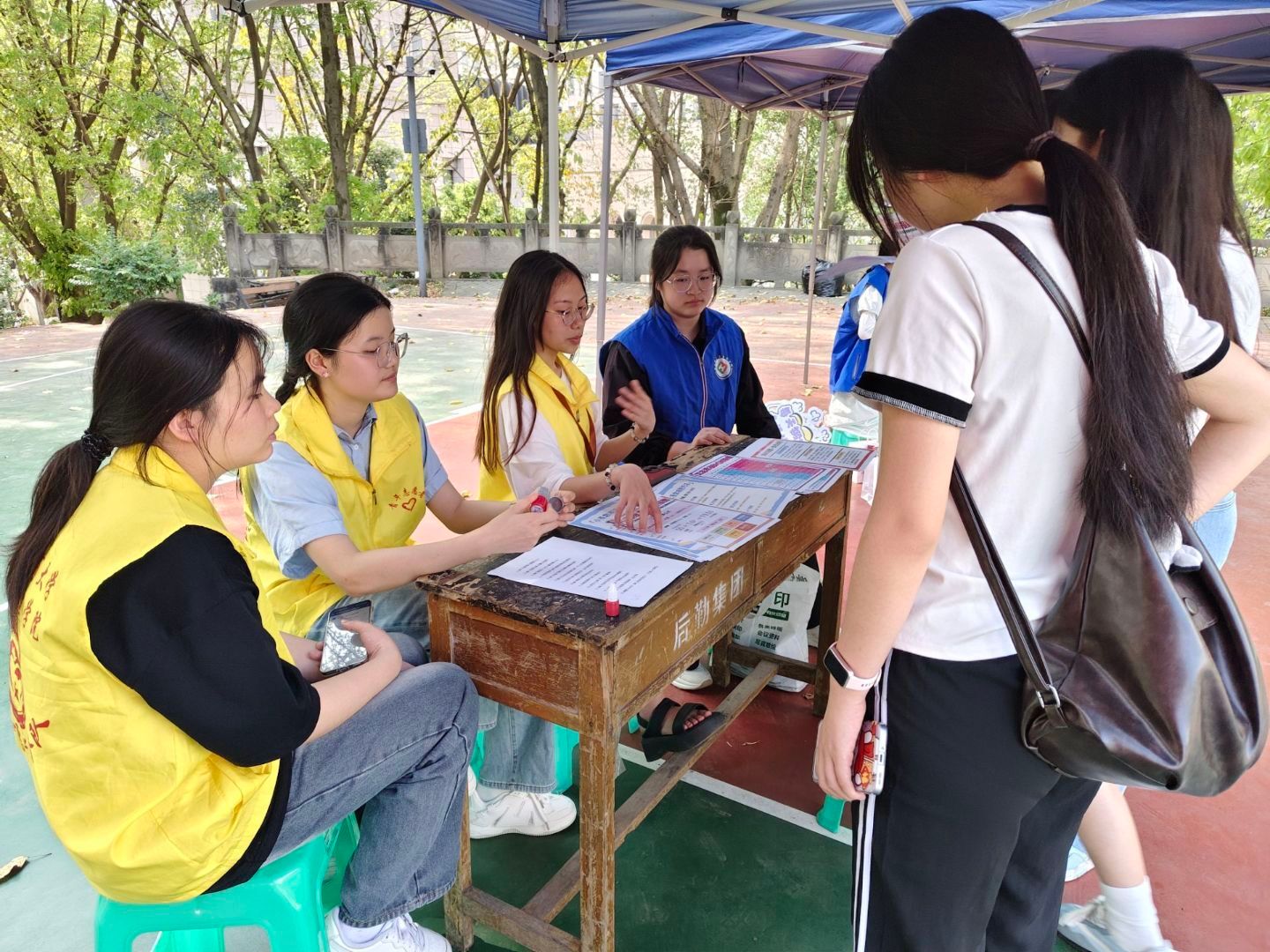四月校园春正好,健康风尚正当时。4月20日,2003网站太阳集团青年志愿者服务队携手小红馨公共卫生志愿服务协会、食品科学与工程学院青年志愿者服务队于重庆工商大学南岸校区体艺馆门口开展“健康集市展风采,活力飞扬聚青春”主题活动。重工商大学子通过知识科普、团队竞赛、趣味打卡掌握健康知识,树立健康生观念。活动吸引近百名学子热情参与,为春日的校园注入了蓬勃朝气。
