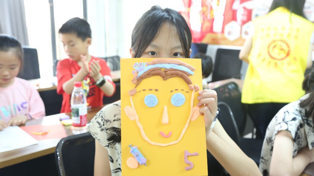 活动中期,来到创意脸谱的制作环节,小朋友们在志愿者协助下运用粘土进行个性化创作。小朋友们塑造出各具特色的情绪脸谱,还积极上台展示并结合作品阐述创作理念,实现了情绪认知的具象化表达。特别设置的趣味问答环节将气氛推向高潮,小朋友们在抢答互动中深化了对情绪管理的理解。