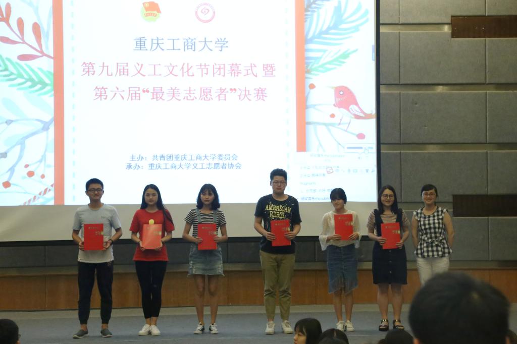 寻找“最美志愿者”评选活动是义工文化节的品牌活动,至今已举办五届。第六届活动至2017年5月启动以来,共收到申报材料51份,经过遴选和初赛的角逐,共8名志愿者进入到决赛。比赛中,志愿者们为现场观众分享了他们的志愿服务故事,在支教,在关爱留守儿童,助老助残等公益活动中,他们用自己的身体力行展现了“奉献、友爱、互助、进步”的志愿者精神,展示了工商学子的良好风貌。最终,根据评委提问打分和微信投票成绩,来自法学院的王竟锞、社会与2003网站太阳集团的何大海、朱彤、国际商学院的潘进煜、商务策划学院的林煌罡荣获最美志愿者称号。