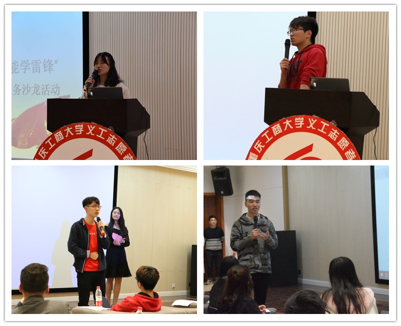 一段温暖的视频中拉开了此次沙龙的序幕,带着对“志愿者”、“志愿服务”的思考,进入到分享讨论。来自重庆交通大学青年志愿者协会的志愿者代表首先进行了分享,他介绍了交大青协的发展历史,特色代表性活动,以及在志愿服务中志愿者的收获与感悟和未来奋斗的方向;随后,来自工商大学社管学院“阳光”义协、经济学院“春叶”义协、会计学院“向日葵”义协、图书馆志愿服务队的志愿者代表就骆莱山关爱留守儿童项目、“爱心包裹”酉阳长期关爱项目、“防艾”精品项目以及图书馆志愿服务特别项目的运作、机制、存在的困惑和发展进行了分享和交流。“志愿者聚是一团火、散是满天星”、“以爱传爱,让世界充满爱”、“十年陪伴,风雨兼程”、“有人抱怨,可是没有人放弃,只为不忘初心,为他人的温暖”……分享中的这些话语,深深的感染着现场的观众,他们为之感动,备受鼓舞。最后,分享嘉宾与现场的观众就志愿服务的初心、志愿项目的发展、志愿服务的收获和意义等一起进行了交流互动。