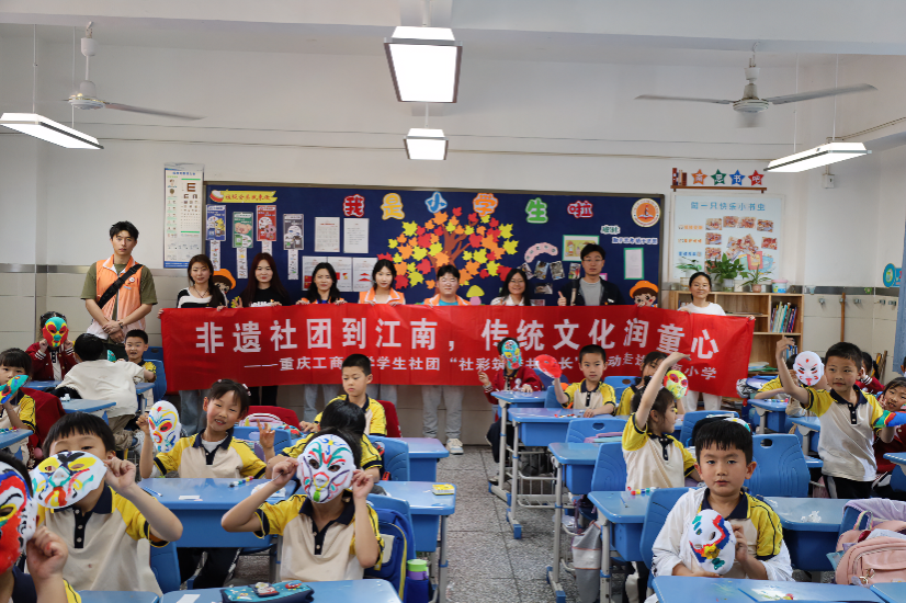 为深入学习贯彻党的二十大精神和习近平总书记关于非物质文化遗产保护重要指示精神,促进非遗文化在小学校园浸润传播,协同推进大中小学思政课一体化建设,4月19日,校团委联合重庆工商大学附属小学(江南小学),通过组织我校学生社团非物质文化遗产研究会进校园的方式,举办以“非遗社团到江南,传统文化润童心”为主题的思政公开课。